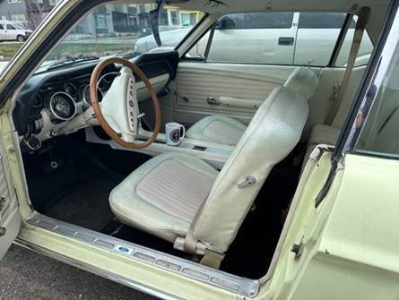 It has a 302 V8 2 BBL engine, auto trans with console, power disc brakes, power steering and factory AC. The interior color is parchment. It has vintage American Racing mag wheels.
